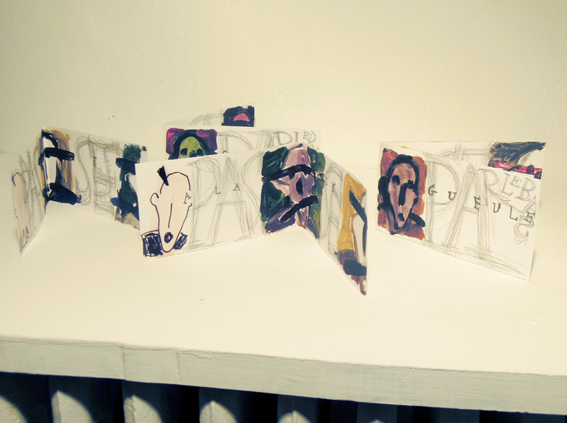eupalinos Livre pauvre, éditions Daniel Leuwers invité par et avec Christophe Massé acrylique et graphite sur papier 8,5 x 16 cm, 4 exemplaires 2013